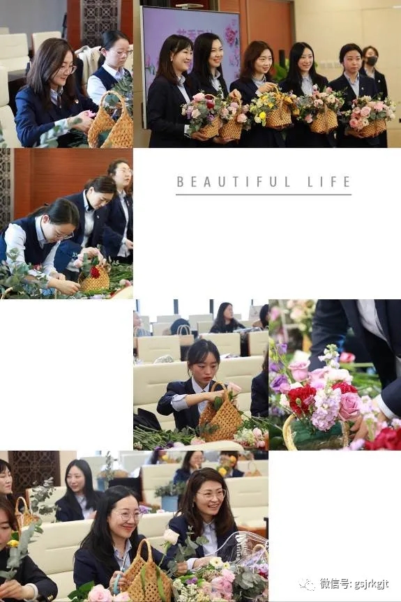 女職工們興趣盎然,邊看邊學,享受親自創作的樂趣和插花藝術帶來的快樂。一支支花,經過大家修枝剪葉、色彩搭配,置入花籃,一盆盆錯落有致、色彩鮮艷、造型各異的插花作品呈現,展現出大家對幸福的感悟和對美的理解與追求。活動現場花香四溢,充滿春天氣息。