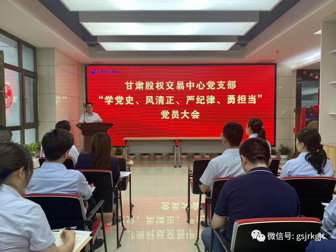 近日,甘肅股權(quán)交易中心召開“學(xué)黨史、風(fēng)清正、嚴紀(jì)律、勇?lián)?dāng)”黨員大會,黨支部書記樊亞娟主持會議,全體員工參加會議。會后,公司班子成員與每位員工分別進行了談心談話,員工圍繞“學(xué)黨史、風(fēng)清正、嚴紀(jì)律、勇?lián)?dāng)”主題,結(jié)合個人工作實際和思想動態(tài),深挖癥結(jié)根源查找自身不足,班子成員耐心細致聽取了員工內(nèi)心訴求和意見建議。此次黨員大會,通過聽真話、解難題、納良策一系列動作,營造出熱心對待、真誠相見、坦誠交流的良好氛圍,激發(fā)了公司上下團結(jié)協(xié)作、攻堅克難、共謀發(fā)展的干事熱情,為進一步開展好各項工作筑牢了堅實的思想基礎(chǔ)。