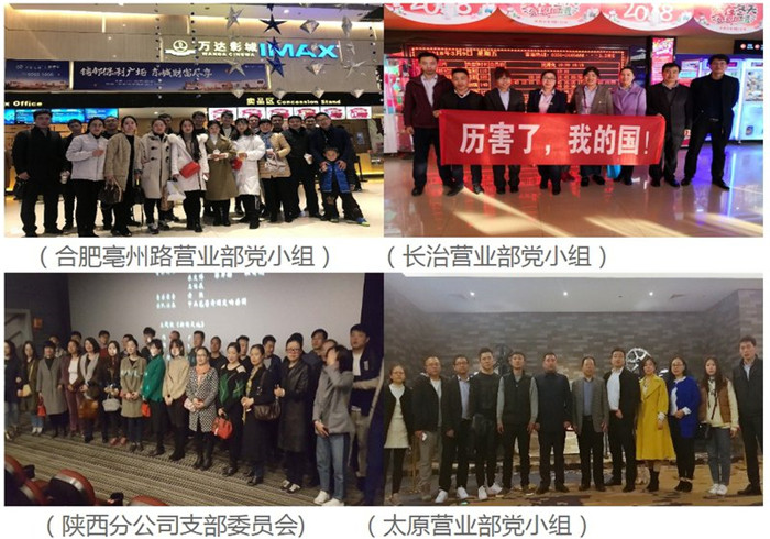 公司各地分支機構積極響應,組織開展觀影活動。公司機關全體人員于3月9日、10日分批、分次在蘭州華聯影城觀看《厲害了,我的國》。一起見證祖國發展的輝煌成就,一同感受新時代的大國豪情。