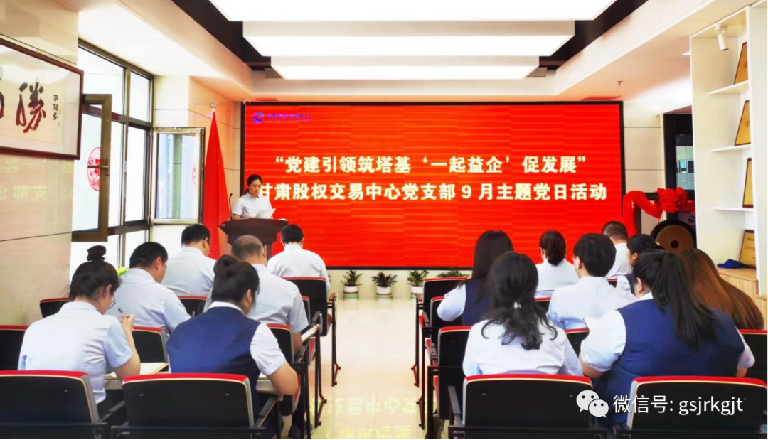近日,甘肅股權(quán)交易中心黨支部召開“黨建引領(lǐng)筑塔基‘一起益企’促發(fā)展”主題黨日活動(dòng)。支部書記樊亞娟主持會(huì)議,全體黨員及員工參加。