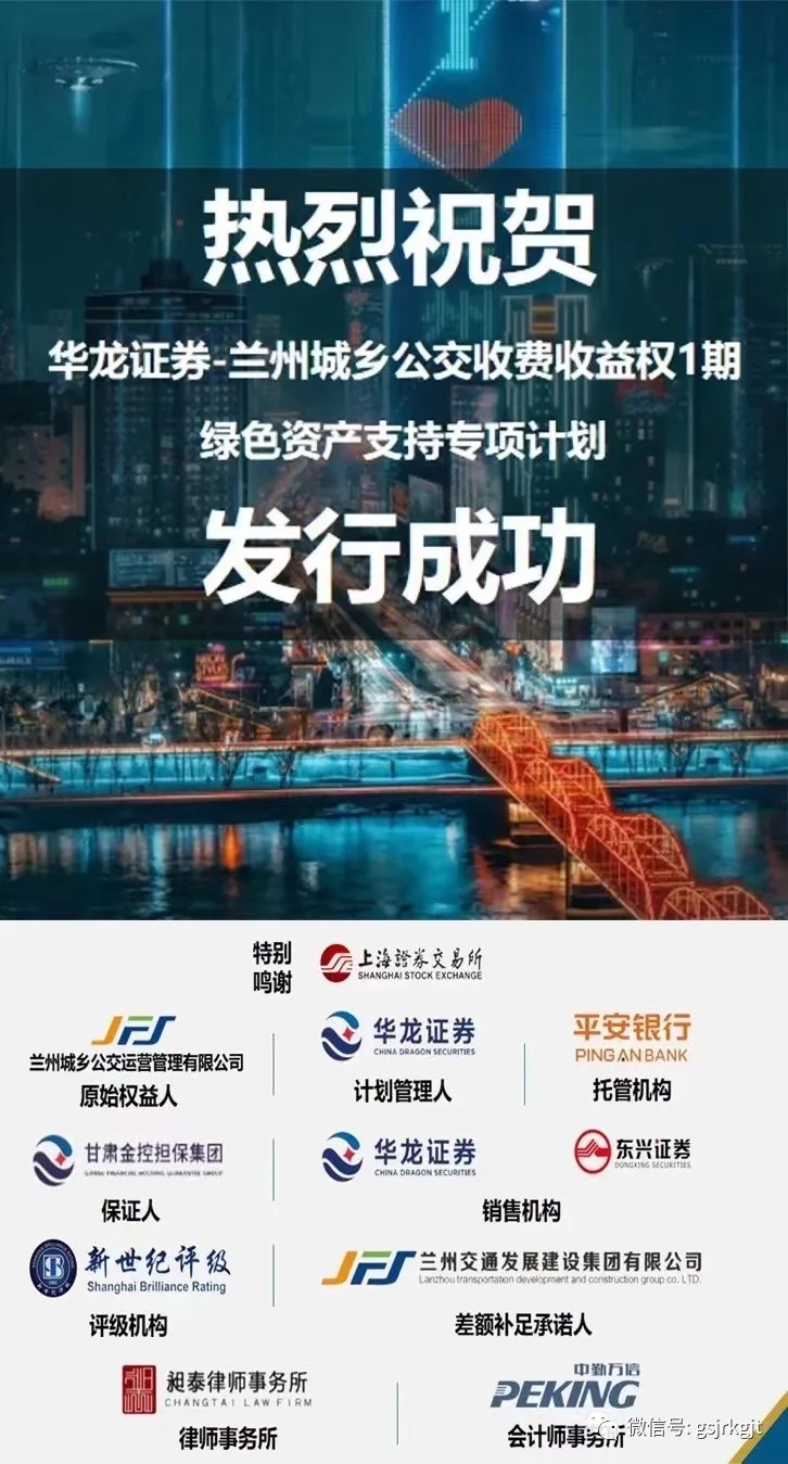 日前,由金控擔(dān)保作為保證人、華龍證券擔(dān)任計劃管理人的“蘭州城鄉(xiāng)公交收費收益權(quán)1期綠色資產(chǎn)支持專項計劃”成功發(fā)行,這也是甘肅首單綠色資產(chǎn)支持專項計劃。