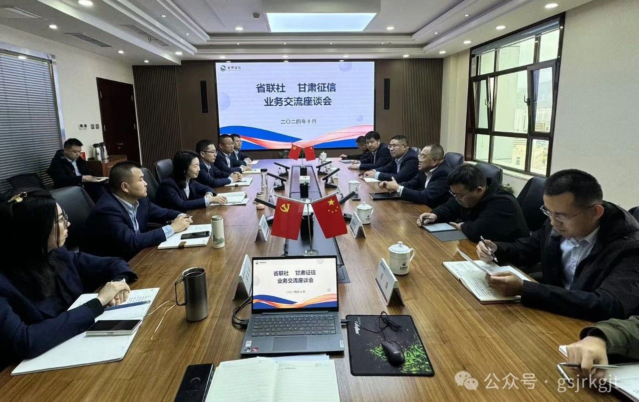 近日,省農(nóng)信社公司部總經(jīng)理李峰一行前往甘肅征信進(jìn)行業(yè)務(wù)交流座談。甘肅征信主要負(fù)責(zé)人及相關(guān)部門人員參會。